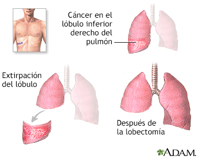 - Lobectomía, para extirpar uno o más lóbulos de un pulmón